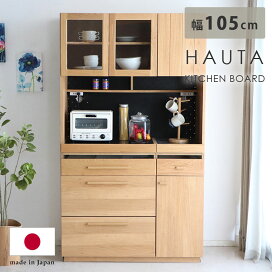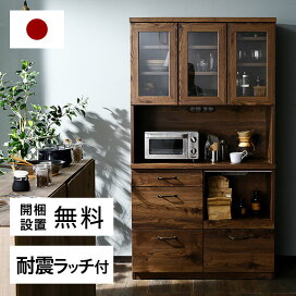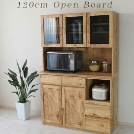 キッチンボード 食器棚 サイドボード オープンボード レンジボード 幅105cm 木目 パイン調 ブラウン ナチュラル カントリー アンティーク 北欧 ガラス扉 スモーク 耐震 モイス シンプル 大川家具 日本製 国産