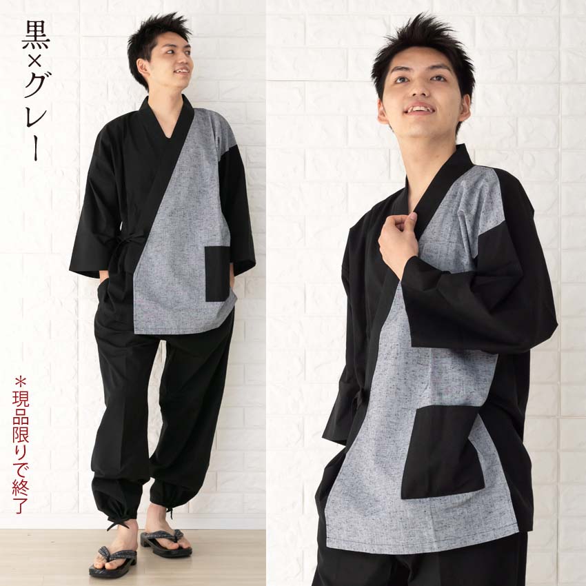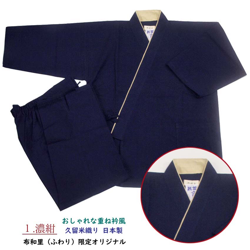 メンズ 作務衣 おしゃれ 重ね衿風 春秋向き 男性 さむえ 日本製 布和里オリジナル 衿回りのパイピングや切り替え柄がおしゃれな 紳士 国産 さむい 誕生日 ギフト誕生日 プレゼント