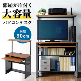 パソコンデスク 120cm幅 木目調 収納棚付 引き出し付 キャスター付 収納ラック付 ハイタイプ 書斎机 書斎デスク 学習机 学習デスク ミシン台 勉強机[100-DESK034]【サンワダイレクト限定品】 【送料無料】