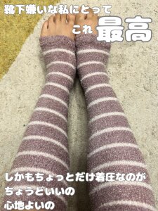 靴下が嫌いで、靴下履いて寝れないんだけど、それだと寒くて寝れなくて、、、これならはけた!あったかくてしかも少しだけ着圧してくれるから翌朝スッキリ♡もうこれないとやだ!!