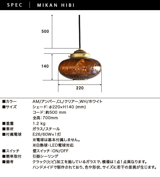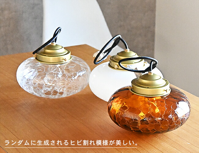 ペンダントライト 1灯 ガラス クラックガラス 照明 おしゃれ 天井照明 MIKAN みかん 蜜柑ヒビ ダイニング 食卓 リビング レール(要プラグ) 玄関 階段 廊下 トイレ 和室 古民家 リノベーション 店舗 和風 レトロ 3カラー クリア アンバー ホワイト コード短縮延長加工可 (2-2