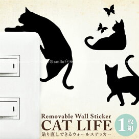 CAT LIFE ウォールステッカー 『落ちそう』 ファブリック素材 [ 壁紙 シール デコレーション スイッチ コンセント ウォールステッカー キャット 猫 ネコ ねこ おしゃれ かわいい インテリア ] sps