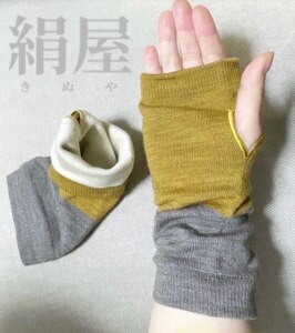 山吹色が可愛くって💓日本製上質シルク💓 お肌に触れる内側をシルク、外側をウールの糸で編み上げています🧶 優しく滑らかな肌触りのシルクと保温性の高いウールで薄くてもしっかり暖かいアームウォーマーです🔥 冷房で冷えるオフィスなどでも大活躍❤️ クシュっとするのがとっても可愛いです。 「首」のつく部分を温めるとよいので色々集めています。 綺麗に梱包されて届くのでプレゼントにもオススメです🎁