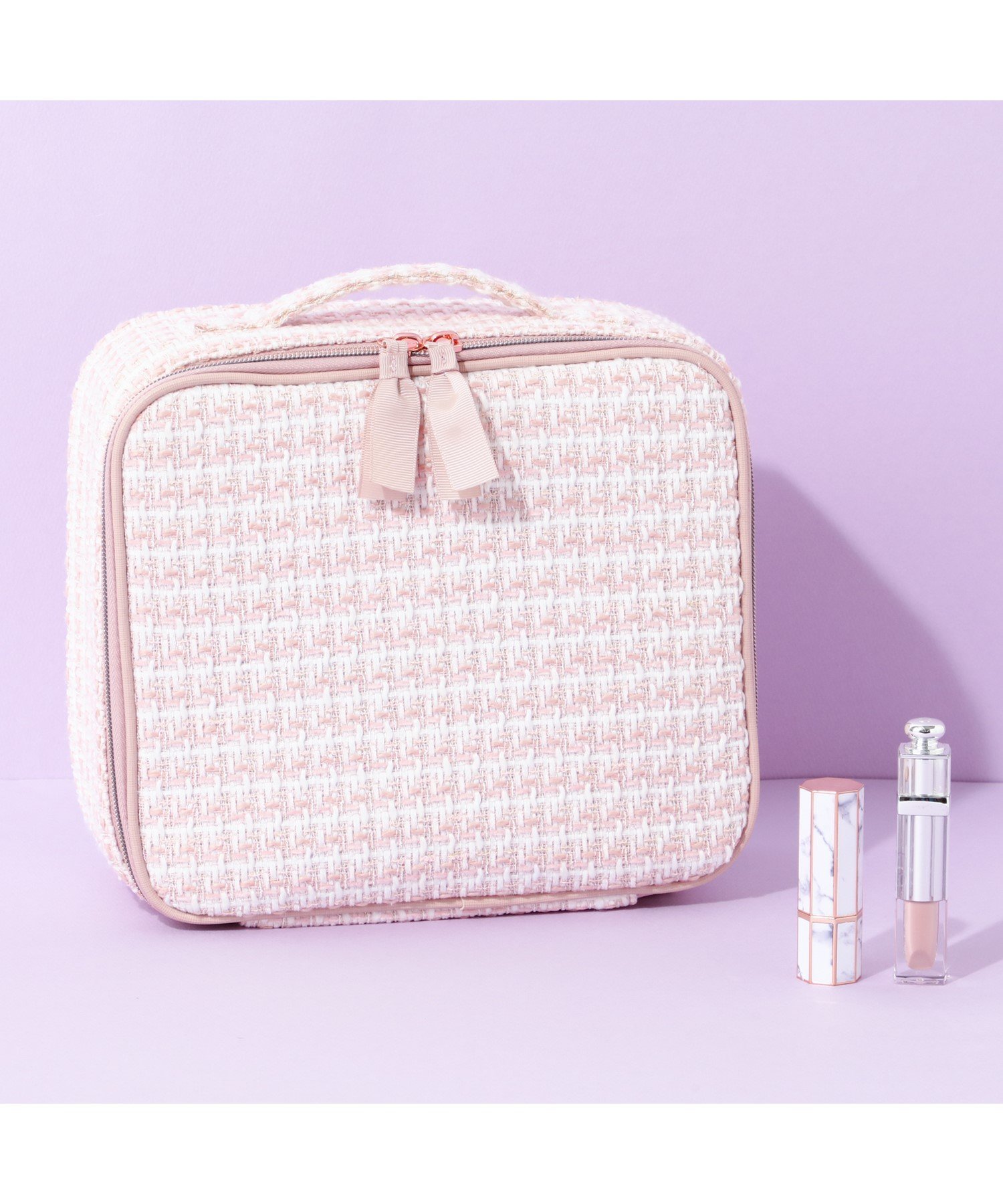 バッグを開いた状態でそのままドレッサーとして使用でき、細かい化粧品を自分好みに整理でき、手持ちのメイク道具に合わせて仕切りは自由に調節可。