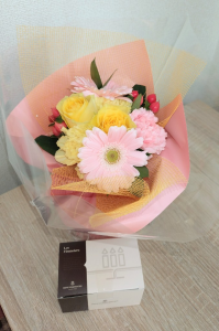 母親の誕生日プレゼントに購入しました。 Sサイズのカラフルを注文♡ お菓子を追加したので3380円でした。 とても可愛らしい花束でとても喜んでいました。 私は自宅で注文して花束を取り出してからプレゼントしたのですが、直接プレゼントする人に送っても、包装してある段ボールも可愛らしい感じだったので問題ないと思います(◕ᴗ◕✿) 色もたくさん種類あって、付属のお菓子もいくつかあるので毎年プレゼントにもぴったりだと思います😊