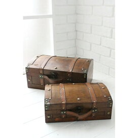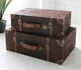 【送料無料】ウッデン・トランクボックス2点セット (BO-01) (ディスプレイ雑貨 レトロ アンティーク 雑貨 収納ボックス BOX 内装 ブラウン小物 結婚式 ウェディング小物 革 レザー 店舗什器 クラシック 宝箱 ふた付き 大きいトランク 蓋つき木箱 インテリア)