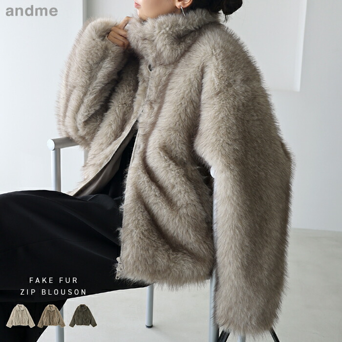 ミックスファー ジップ ブルゾン レディース アウター ファーブルゾン ファーコート ジャンパー カーディガン 羽織り 体型カバー ゆったり 起毛 フェイクファー スタンドカラー 2way 裏地付き カジュアル トレンド セレモニー 秋服 冬服 あったか 暖か 防寒 秋冬 春 秋 冬