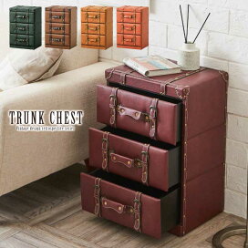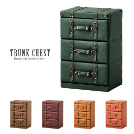 トランク チェスト 3段 トランク収納 収納 収納家具 小物収納 タンス ヴィンテージ アンティーク おしゃれ 取っ手 持ち手 コンパクト 衣類収納 合皮 ソフトレザー 幅41cm 高さ60cm ブラック 黒 服 キャメル ストレージ シンプル レトロ ハンカチ 玄関 新生活
