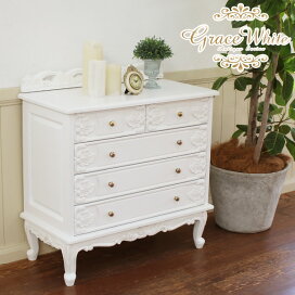 チェスト 白 ホワイト アンティーク 猫脚 チェスト [小] 【Grace White(グレイスホワイト)】 アンティーク家具 白家具 アンティーク調 姫系家具 猫足 収納家具 ハイチェスト ホワイトチェスト 木製