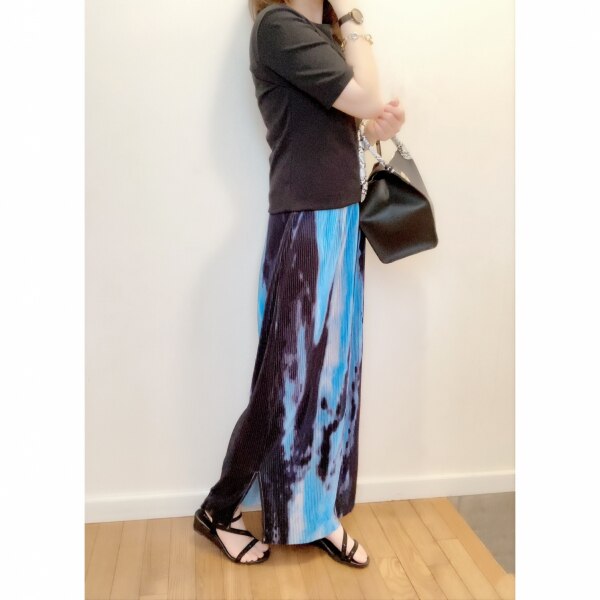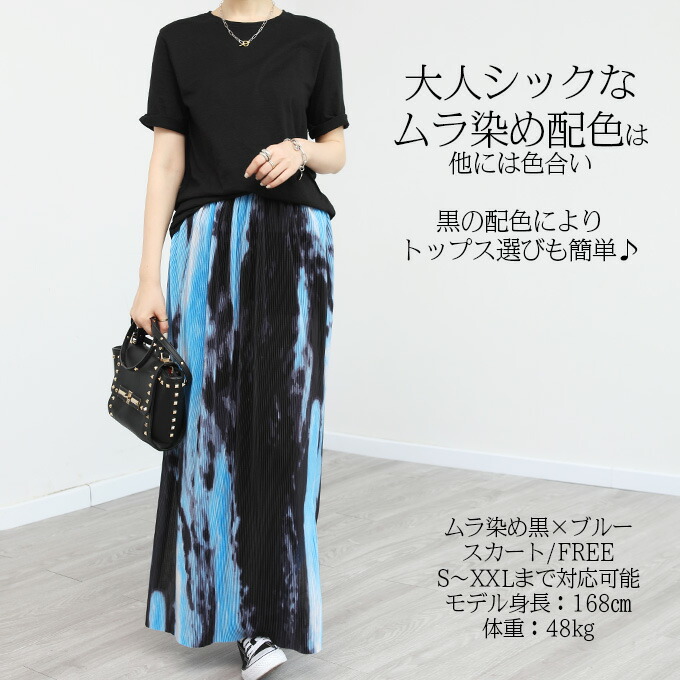 ワイドパンツ プリーツパンツ セルフカット ロングスカート レディース プリーツ ゆったり 大きいサイズ 低身長 柄 パンツ スカート カットフリー ウエストゴム 涼しい タイダイ 黒 ブラック 【 総柄プリーツパンツ&スカート 】ムラ染め