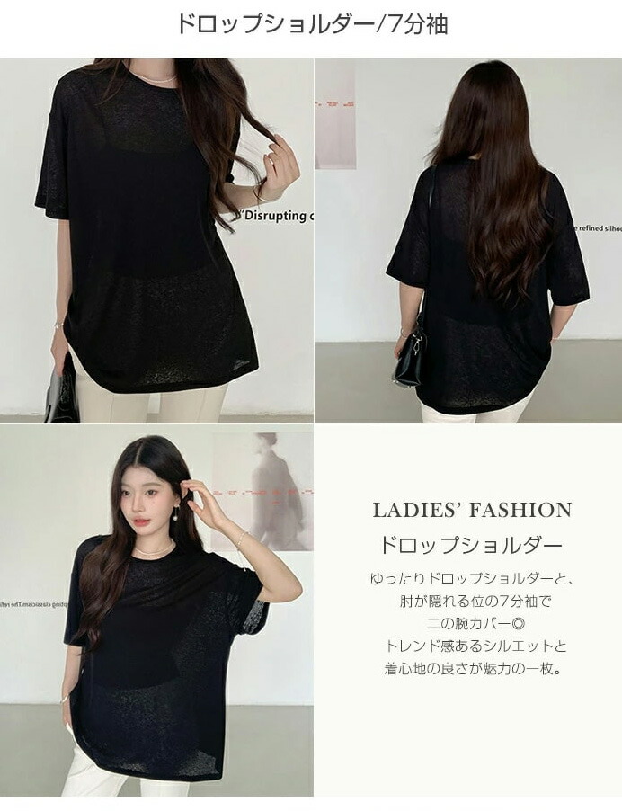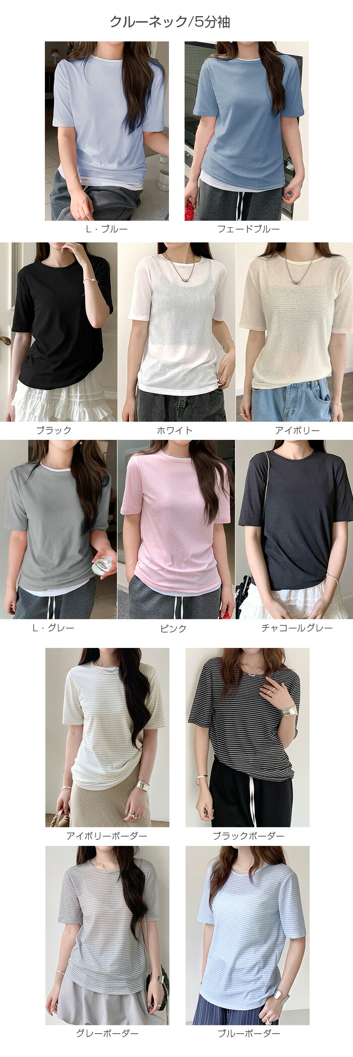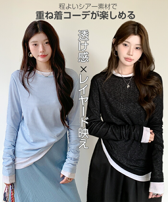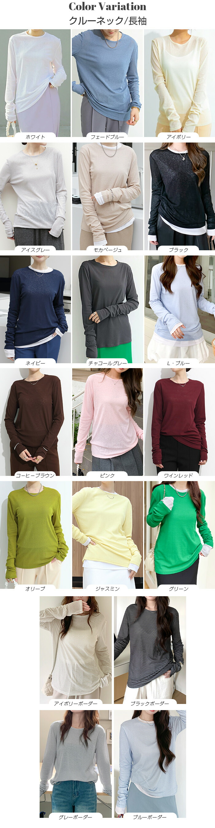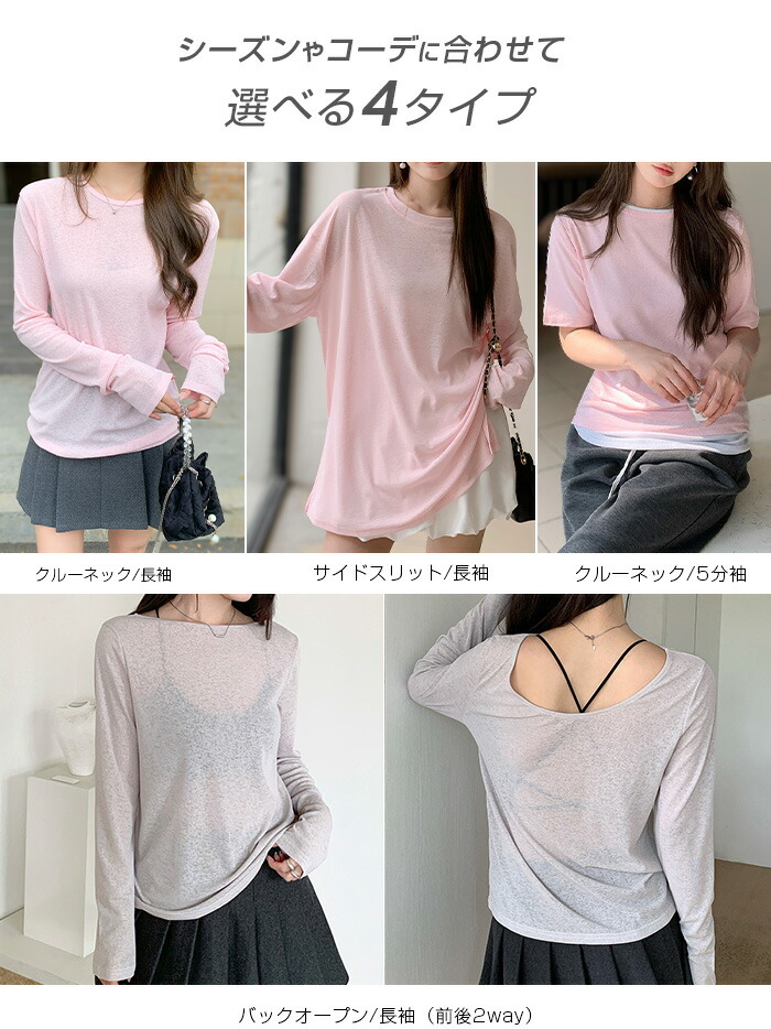 【期間限定:1枚799円〜999円!3枚購入&クーポン利用で】ロンT レイヤード シアー トップス tシャツ 長袖 半袖 重ね着 シアートップス Uネック インナー 無地【 シアーロングスリーブTシャツ】シースルー UV 紫外線 ※5分袖/7分袖/バックオープンがページ内最安c_bag