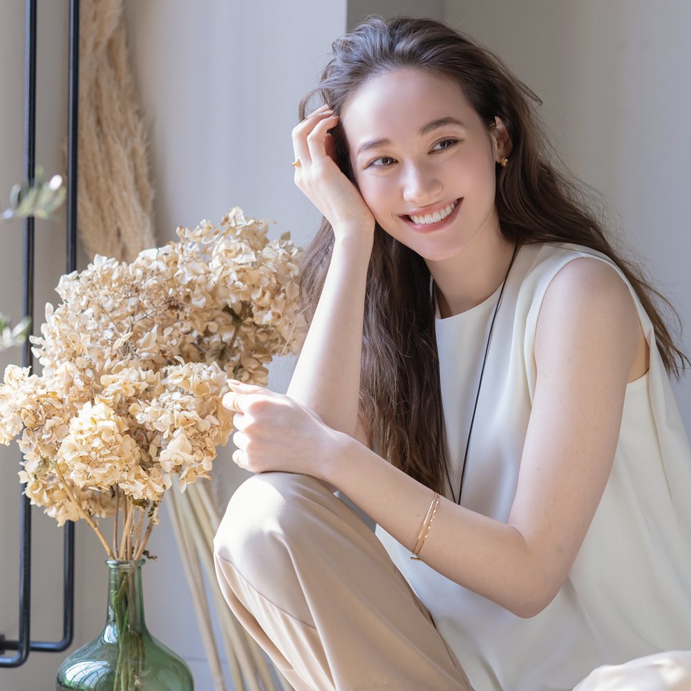 サイズ調整できますし、 細いダブルバングル+バックチェーンは可愛くて華奢見えです💕