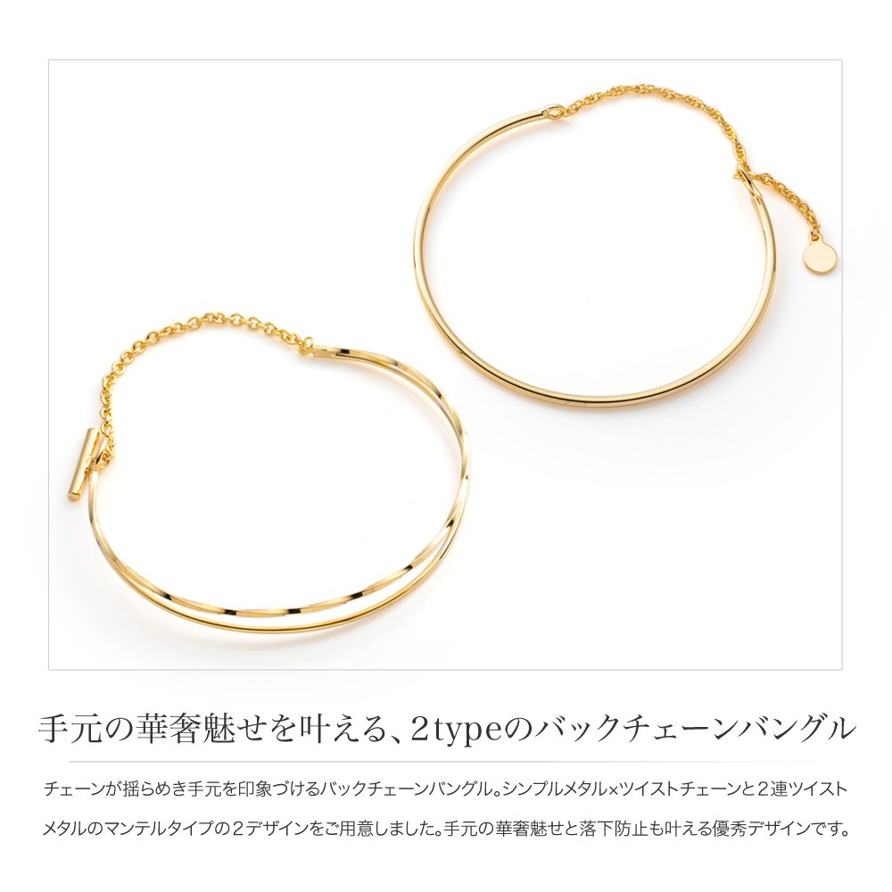 【全品送料無料×P最大47倍!】 バングル 金属アレルギー ニッケルフリー 18kコーティング レディース 細め ブレスレット バックチェーン 切り替え マンテル 大人 上品 エレガント きれいめ 華奢 フェミニン ゴールド シルバー ピンクゴールド