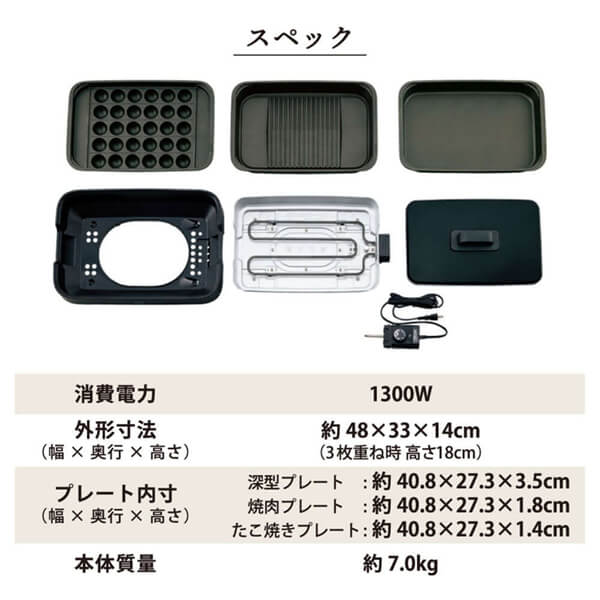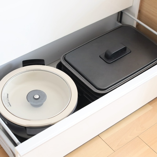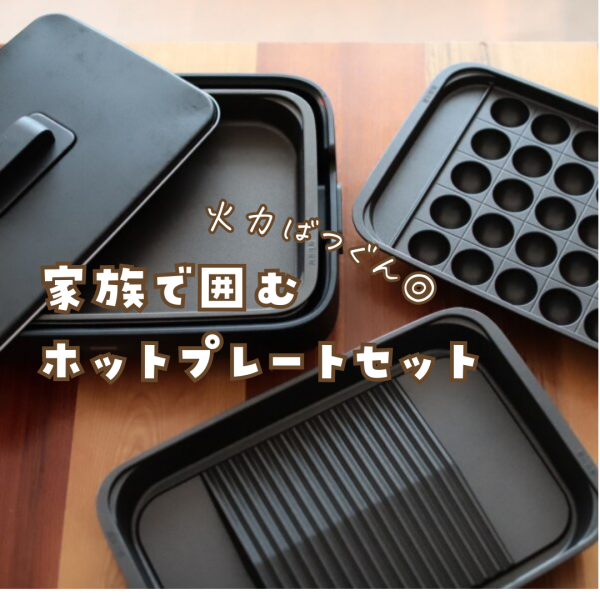 家族で囲むおうちごはんが楽しくなる、我が家で使っているホットプレートセット。「深型プレート」「傾斜溝つき焼肉プレート」「区切り線つきたこ焼きプレート」の3枚プレートがセットになった安心の象印製です。しっかり熱が入るのでたこ焼きも綺麗に作れる!深型プレートなので、「焼く」から「煮る」まで料理のレパートリーも広がる✨マットでシンプルなデザインもお気に入り♡全てスッキリ重ねて、キッチン下の引き出しで収納してます😊