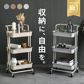 \置くだけで収納力アップ/ スリムなのにたっぷり入る3段ワゴンで、散らかりがちなキッチンやリビングがすっきり整います✨ キャスター付きで移動もラクラク、必要な場所にサッと持っていけて家事効率もアップします!