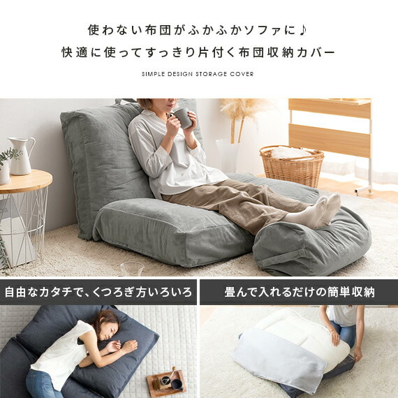 【2/10限定!最大5,000円OFFクーポン配布中】 収納ケース 布団収納袋 布団収納 ふとん収納 布団 収納袋 クッション ソファ 敷布団 掛布団 セット ケース おしゃれ カバー デニム ソファーカバー ソファになる布団収納カバー Deco(デコ) 敷き・掛け布団用セット 2点セット