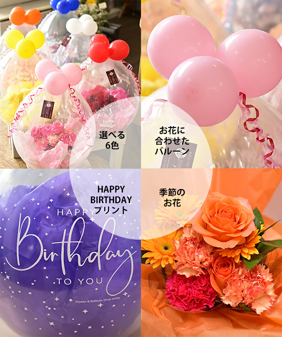バルーンフラワー 誕生日 選べる6色 送料無料 誕生日プレゼント 女性 男性 子供 おしゃれ サプライズ ギフト 花 バルーンギフト 透明バルーン フラワーアレンジ フラワー&バルーンショップ アミティ