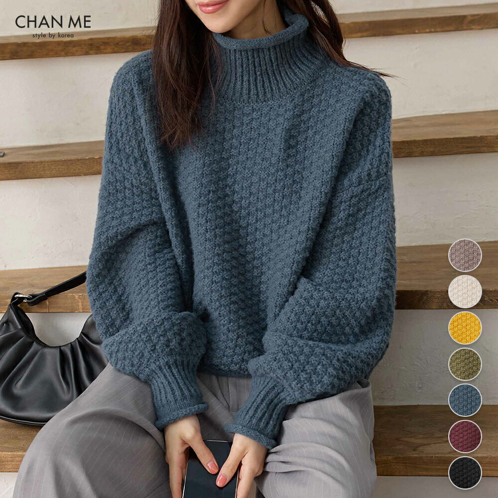 かわいいハイネックのニット✨🩷カラー豊富👌😊💕 ぽわん袖💕 ポコポコした編み地がステキ👌💕