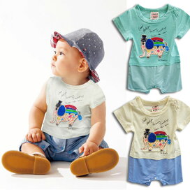 総柄 ヒッコリーデニム ベビー カバーオール ロンパース 半袖 新生児 赤ちゃん 子供 服 男の子 女の子 ボーイ ガール ベビー服 出産祝い ギフト プレゼント おしゃれ 可愛い かっこいい 春 夏 秋 70 80 前開き 横開き 韓国子供服 子ども服 70cm 80cm 恐竜 きょうりゅう
