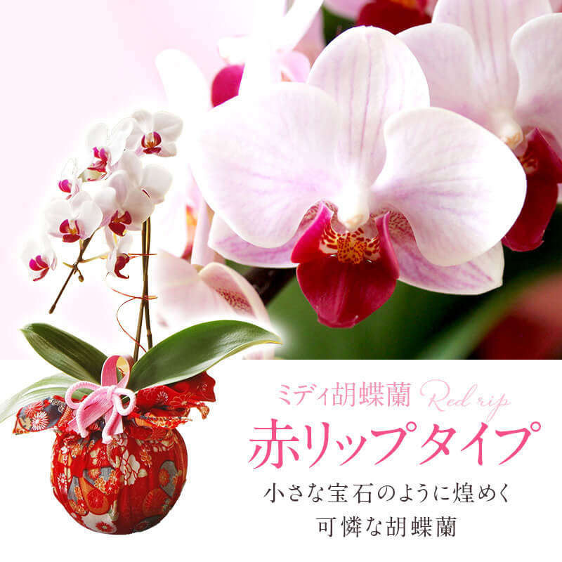 胡蝶蘭 花『ミディ胡蝶蘭 和風風呂敷仕立て「さくら小町」』花言葉 幸せが飛んで来る 和モダン 洋ラン 洋蘭 鉢植え 送料無料 誕生日 御礼 お中元 お盆 風呂敷【贈】《敬》
