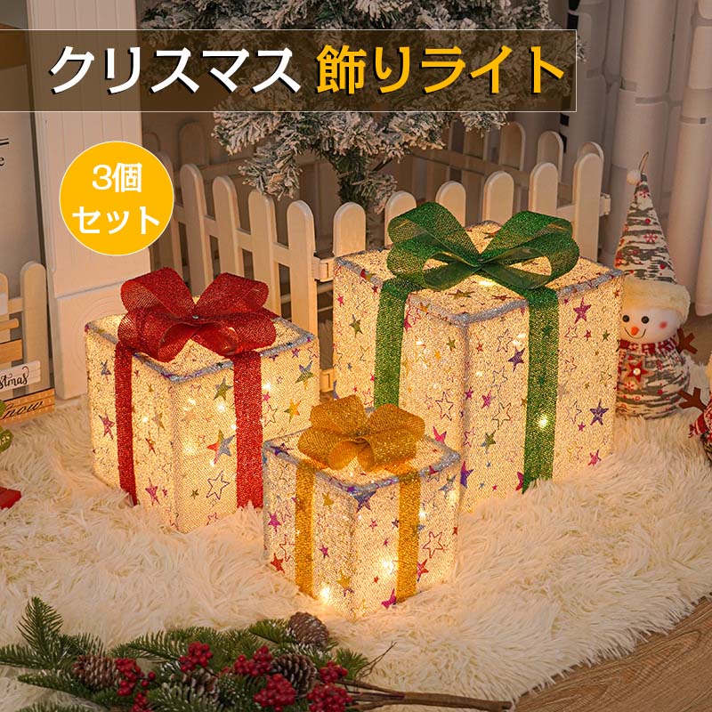 🎁クリスマスを彩る!ギフトボックス型LEDライト3個セット✨ クリスマス気分を一気に盛り上げる、ギフトボックス型の可愛いLEDライトをご紹介します💖! 大小3個セットで、玄関やリビングに置くだけで一気に華やかな空間に早変わり🎵。きらめく星の模様と大きなリボンが、見ているだけでワクワクさせてくれます🎄。 ✅嬉しいタイマー機能付き💡! 点灯・消灯の手間いらずで、毎日決まった時間に自動でON/OFFしてくれます。 ✅電池式なので、コンセントの位置を気にせず、どこでも飾れるのが魅力です😊 クリスマスツリーの足元や、窓辺のデコレーションにぴったり! このライトで、今年のクリスマスをさらに特別に演出しませんか?🎅
