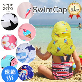 うなじの日よけ付スイムキャップ。海水浴やプール遊びに使えて、濡れても大丈夫、サイズも幅広いなんて便利。