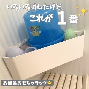 お風呂のおもちゃ収納にオススメ✨水切れバッチリ👌コーナーラック🧴 子供がいるとお風呂のおもちゃ置き場に困るよね❓ 今までネットやカゴなど、いろんな収納を試したけど カビてしまったり、子供が取り出しづらかったりで なかなかいいものに巡り会えなかった🥲 そんな時に出会ったのがコレ❗️ 浮かせられるし、水切れも抜群👍 それでいて、おもちゃもたくさん入る🧸 小さなおもちゃも底の穴から出なくて、ストレスなし😍 湯船の上に設置すれば、お風呂に入りながら 取り出し、片付けができる❗️ 好きな高さに設置できるから 子供は中身が見えて取り出しやすそうだよ🌟 掃除はぶっちゃけ1年に1度くらいしかしてない😅笑 それでも、マグネット部分や底部分がカビたりしてないし 忙しいママ、ズボラママにもオススメです✨