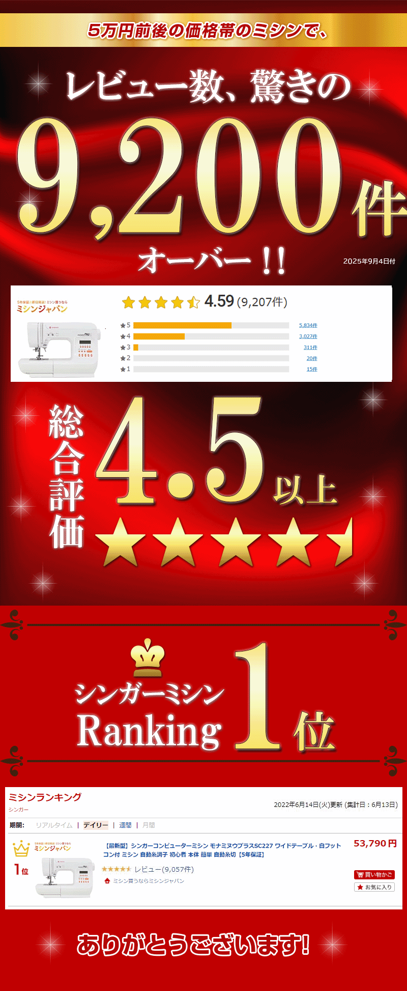 【P10倍!さらに1,210円OFFクーポンあり!】シンガーコンピューターミシン モナミヌウプラスSC227 ワイドテーブル・白フットコン付 初心者 本体 簡単 【最大5年保証】【送料無料】