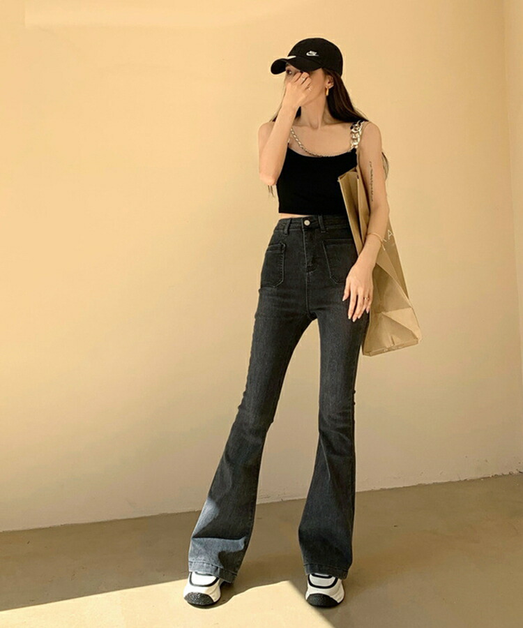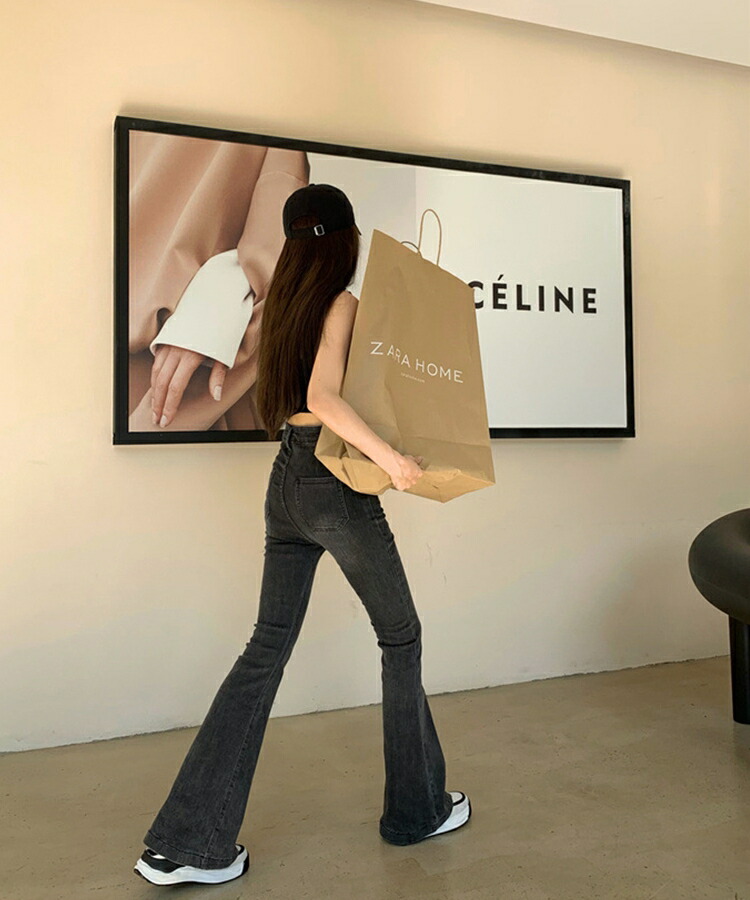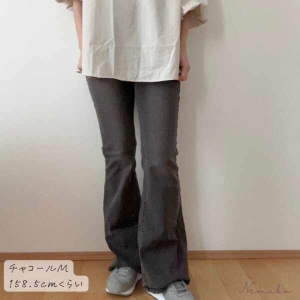 PR 半額クーポンあり❤️🔥 ストレッチ効いてて履きやすいフレアデニム 50%オフクーポン 3/31 23:59まで! 158.5cmくらいで チャコールM履いてます 底厚めのスニーカーで丈はちょうどくらい ぴちぴちに見えますが、 ストレッチがよく効いているので きつい感じもしなくて履き心地は良いです😂 オーバーサイズのトップスと 合わせて着たいと思います!