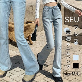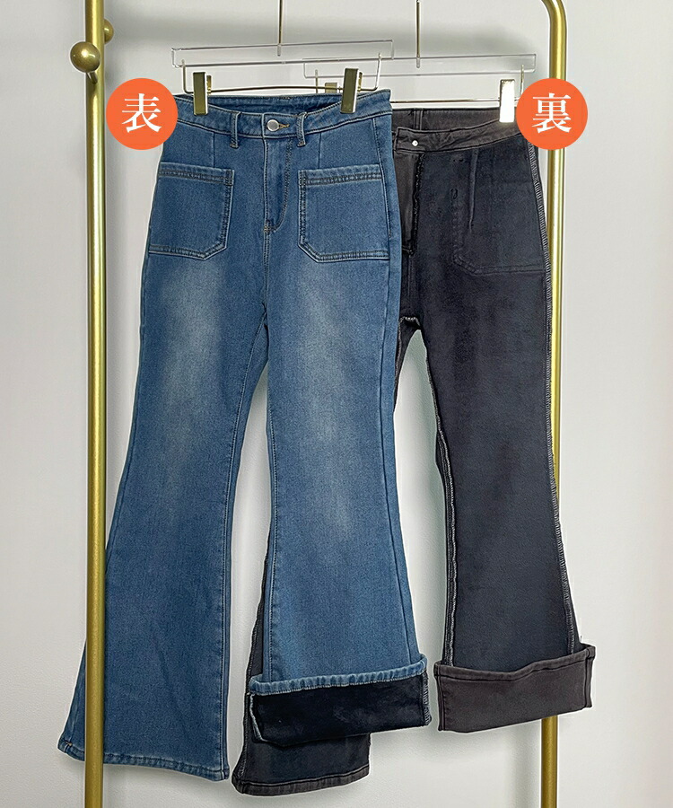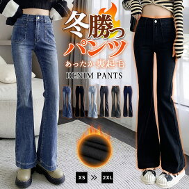 【2245円〜!半額クーポンで】ノーマル / 裏起毛 2タイプ 選べる ストレッチ デニムパンツ レディース パンツ ズボン フレアパンツ ジーンズ レギパン フルレングス 美脚 脚長 黒 チャコール きれいめカジュアル おしゃれ seu seu22q31118