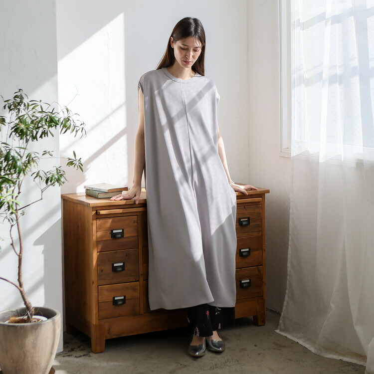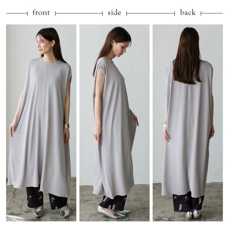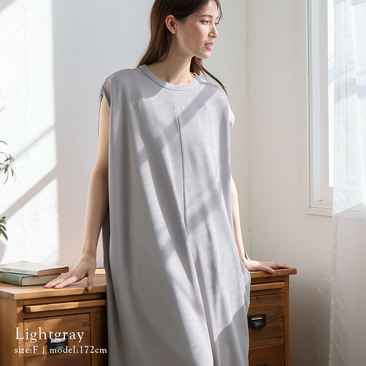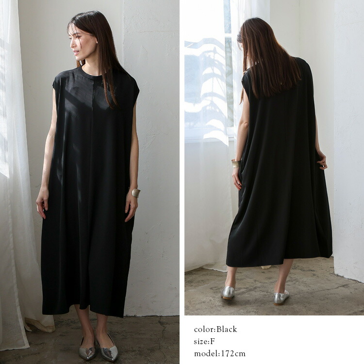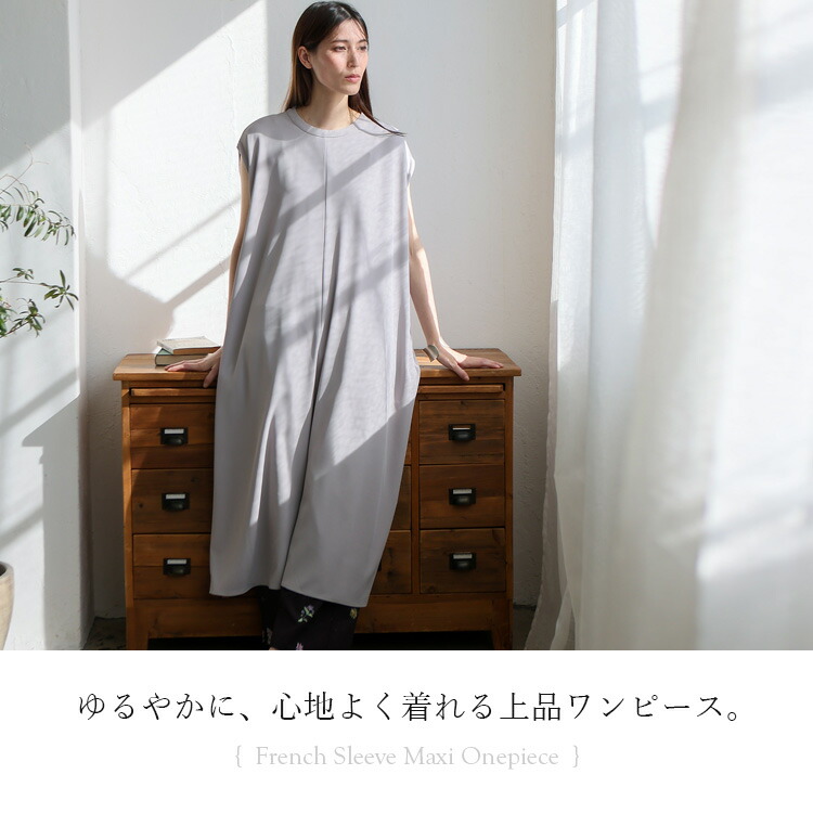 フレンチスリーブ ワンピース レディース ロングワンピース 夏 春 Aライン きれいめ ロング丈 マキシ丈 クルーネック ポケット付き ノースリーブ 上品 大人 大きいサイズ ゆるワンピ 華奢見え カジュアル 春服 vkkc-0521【メール便】【No Rule No Line】
