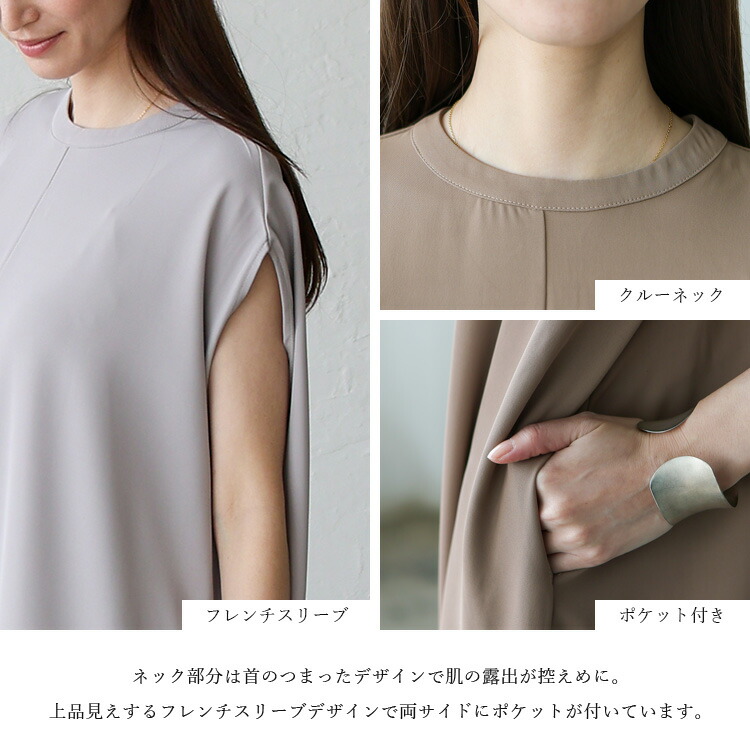 PR さらっとシンプル 一枚で決まる♡きれいめワンピース フレンチスリーブの形が 腕を誤魔化してくれる! ○サラサラしたシワになりにくい生地 ○ポケットつき 158.5cmくらいで丈は 長すぎず短すぎずちょうど良い感じでした♡