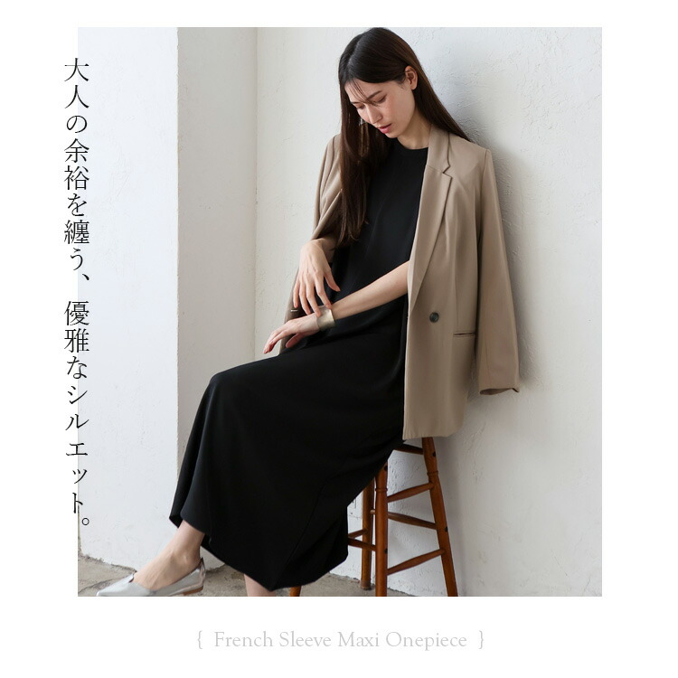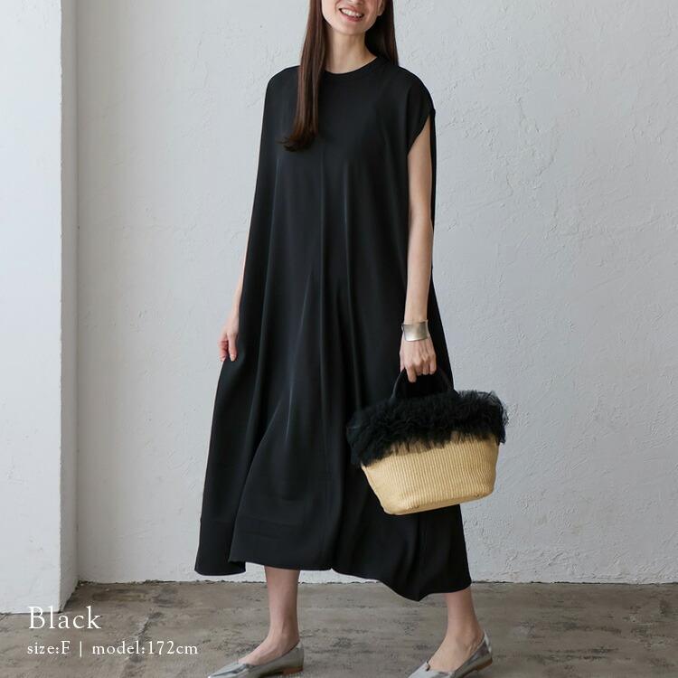 vita felice フレンチスリーブ ワンピース レディース ロングワンピース 夏 春 Aライン きれいめ ロング丈 マキシ丈 クルーネック ポケット付き ノースリーブ 上品 大人 大きいサイズ ゆるワンピ 華奢見え カジュアル 春服 vkkc-0521