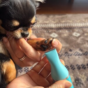 コードレス、充電式のペット用バリカンとネイルケア🐶 足裏の毛のカットだけでなく、お尻周りもさっとカットしたかったので細すぎずのこのサイズがちょうどよかったです✨ 爪を自分で切った後は犬にカリカリされると痛かったけど、 この砥石部分に爪をあてると簡単にケアできました! 稼働音もそんなに大きいとは感じなかったです。 実際にうちの子たちはビックリすることなく使えました! 使用後は水でさっと洗うことができます。