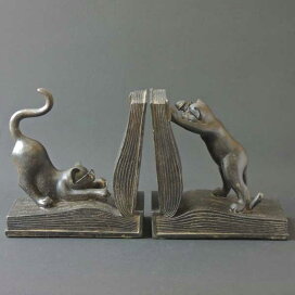 本立て ブックスタンド ブックストッパー CDスタンド仕切り 黒猫 ねこ 猫雑貨 インテリア雑貨 オブジェアンティーク風 レトロ調 ねこグッズ ネコグッズ猫モチーフ 動物 アニマル 雑貨 アジアン雑貨おしゃれ お洒落ブックエンド 学者ネコ(SET)