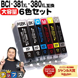 【大容量 標準サイズの約1.5倍】顔料ブラック付 キャノン BCI-381XL+380XL/6MP 6色セット 互換インク ICチップ有 (残量表示機能付) 内容:BCI-380XLPGBK BCI-381BK BCI-381C BCI-381M BCI-381Y BCI-381GY 機種:PIXUS TS8430 TS8330 TS8230 福袋