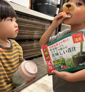 約7年買い続けているだいすきな青汁🥰 お水だけでも甘くて美味しい😋 無糖のヨーグルトにかけたら子どもたち大喜び🤣 個包装で子どもたちが自分で持ってきてくれますが、 子供の指では開封が難しいです! 粉をこぼされる心配がなくて助かります😏👑