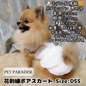 【🐶PET PARADISE🐱】『花刺繍ボアスカートタイプ』「Size:DSS」🛒 ✅こちらはスカートタイプ。つなぎタイプもあります✨ ✅可愛過ぎて満場一致で即買い🌼.* ✅女の子と間違えられるソル君です🐶🧡 ✅パフスリーブですが袖に見えるだけのタイプなので、袖有り苦手な子でも着用OK🎶 ✅オリ写では写っていませんが、前の首元がマジックテープタイプになっています。襟も可愛い♡ ✅とーっても暖かいので寒い日でもソルご満悦💖 ✅ペットパラダイスのサイズは我が家の感覚だと 3S<DSS<SS の感覚です(デザインでも違う⚠️) 夏は3S、DSS。冬は冬の毛で爆毛になるのでDSSが多いソル 参考までにどうぞ🥰 🛍1/1