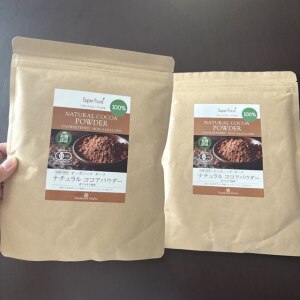 リピしているココアパウダー🍫 ※今回まとめ買いをしたので、写真には2つ写っていますが「1袋300g」の価格です☻ 温めた豆乳や牛乳に混ぜるだけで、甘さ控えめのホットココアに☕️ 砂糖も香料もなしの純ココアなので、すっきり飲めて好きです☺️