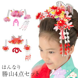 七五三 髪飾り 日本髪 勝山かんざしセット 7歳 七歳 7才 七才 つまみ細工 ちんころ 4点セット 赤 重ね菊 花 簪 和装 子供 ヘアアクセサリー かみかざり