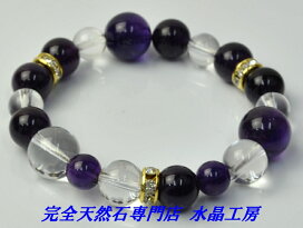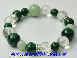 【健康で安全な毎日・伝統的守護石に守られた生活】 マラカイト&アメジスト&透明本水晶ブレスレット(サイズMIXタイプ)<返品・交換可>無料サイズ変更保証付き