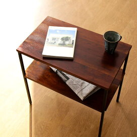サイドテーブル 木製 スリム 20cm ソファー ベッド 横 マガジンラック付き 雑誌 新聞 収納 おしゃれ アイアン コンパクト 小さい 小さめ 天然木 シーシャムウッド 無垢材 リビング トイレ 長方形 幅40cm 奥行20cm 高さ49cm シーシャムマガジンテーブル
