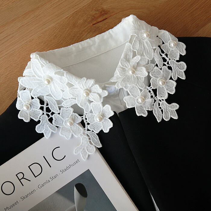 一気に華やかになる♡ パールフラワーデザイン付け襟 付け衿 つけ衿 アタッチドカラー つけ襟 パール フラワー ブラウス ネックレス チョーカー 重ね付け ホワイト 上品 大人可愛い