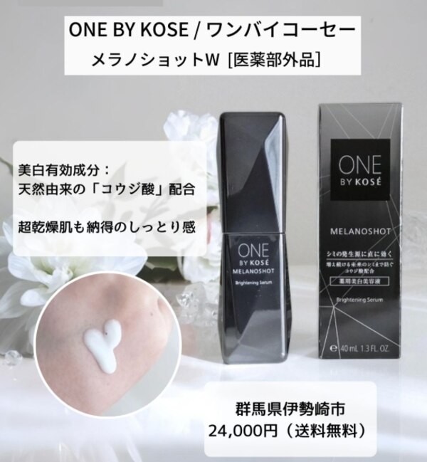【ふるさと納税】使い心地が抜群に良い美白美容液はこれ! ワンバイコーセー メラノショットW [医薬部外品] 40mL ☑︎特徴 天然由来の美白有効成分である 「コウジ酸」配合 「コウジ酸」が発生源に直に効き、メラニンの生成を抑え、 シミ・そばかすを防ぐことで隙の無い美白*ケアが可能に ☑︎使ってみて ゆるめの乳液に近いテクスチャー。 とろみはありますが、とても伸びが良く 馴染ませているだけで心地よいです。 保湿力にもすぐれていますよ! パッと輝くクリアな透明感のある印象を目指しましょ♪