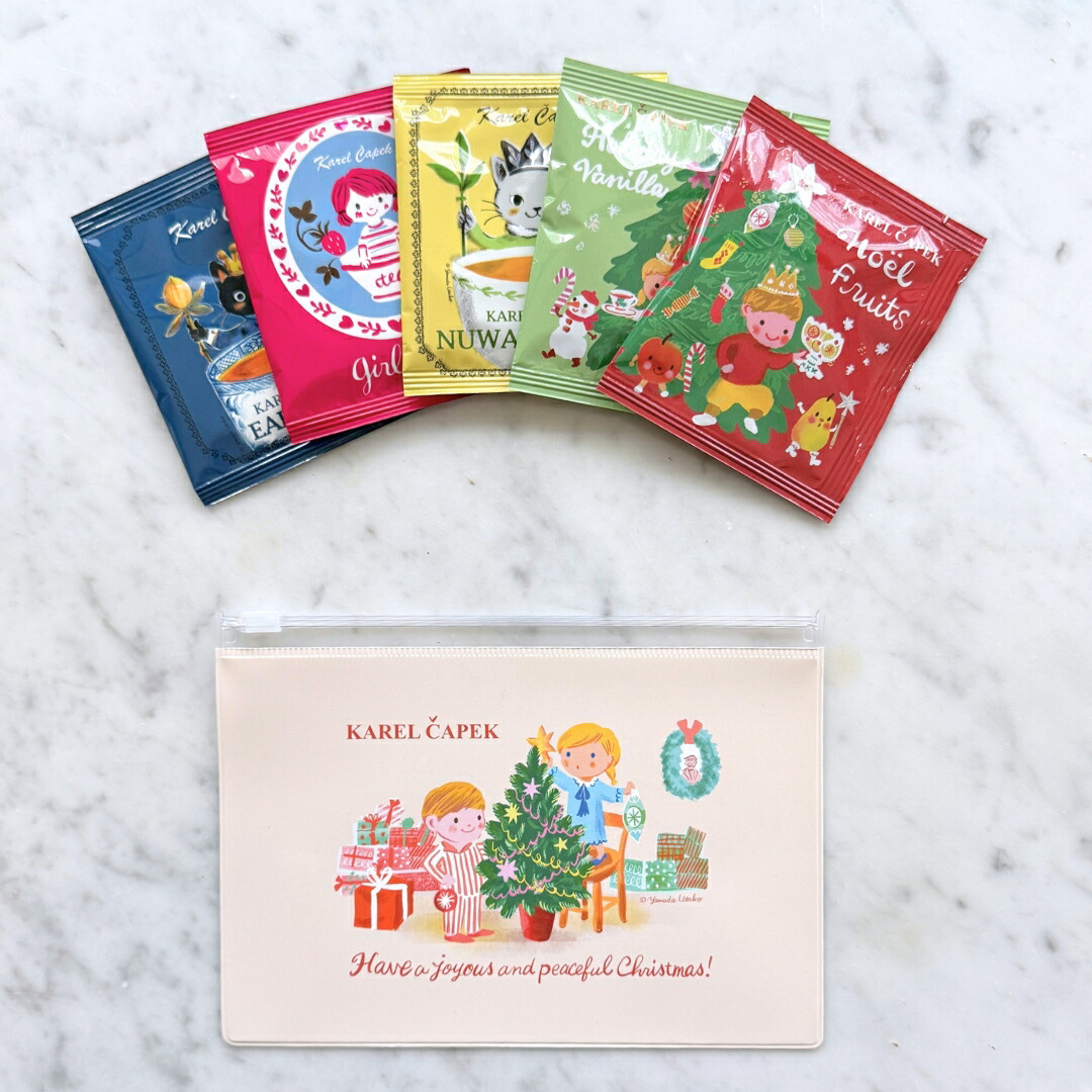 カレルチャペックのティーバッグ5種類が入ったクリスマスセット😘クリスマス🎄柄のかわいいポーチに入っています😍 カレルチャペックのお茶は茶葉が新鮮で美味しいです🤍フレーバーティーも味がキツすぎないのでどれも美味しいですよ〜🤭