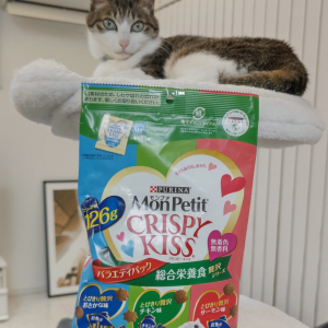 モンプチ クリスピーキッス バラエティパック 総合栄養食。 ●1袋に3つのおいしさ ●「クリスピーキッス」総合栄養食贅沢シリーズ3フレーバーを大袋バラエティパックに 気に入ったニャン😺♡