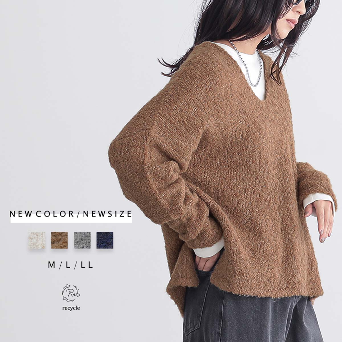 〛 ----- 最新情報は 【楽天市場で詳細を見る】からチェック👇 ----- ブークレニットトップス Vネック セーター 長袖 プルオーバー 軽量 軽い 柔らか ちくちくしない ゆったり リサイクルポリエステル サスティナブル エコ 秋 冬 M Lサイズ 洗濯可 for/c フォーシー 秋冬ファッション