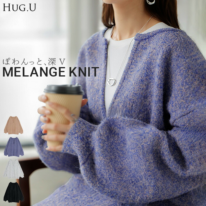 🌷 深V ニット レディース🌷 ♡4色展開♡ 複数の色や糸が混ざったマーブルニット✨ 上半身のラインを拾わない広い身幅のボックスシルエット✨