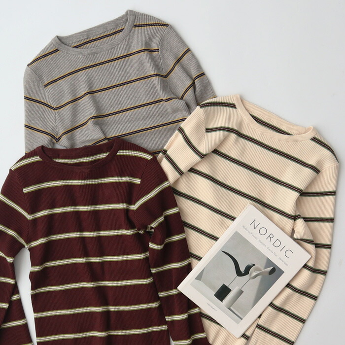 マルチボーダーリブニット🤍1枚でもワンピやサロペのインナーにも🫶 🏠 【
