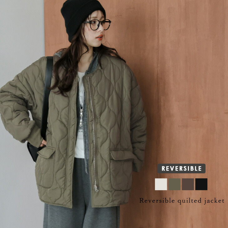 アウター ライトアウター リバーシブル キルティング ノーカラー ラウンドスリット 着回し 大人カジュアル レディース おすすめ おしゃれ フリーサイズ 2025秋冬新作